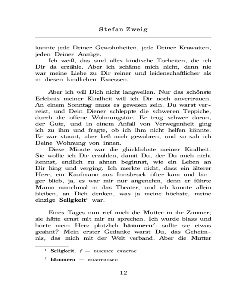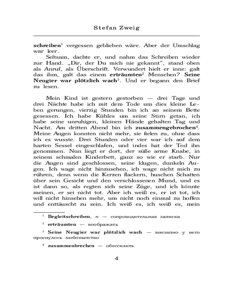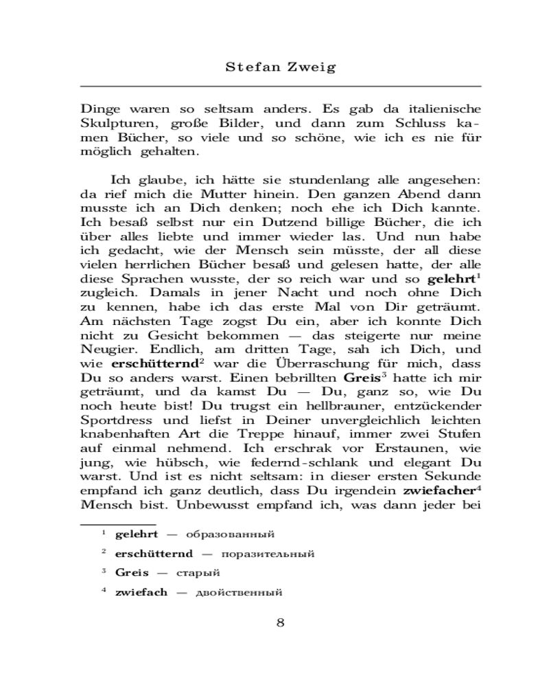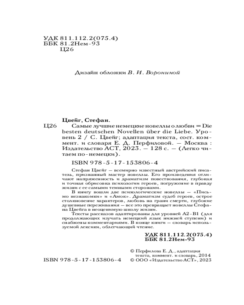 В данный момент этот товар отсутствует в продаже. Возможно, у нас найдется аналогичный или похожий товар здесь. Серия: Легко читаем по-немецки Стефан Цвейг — всемирно известный австрийский писатель, признанный мастер новеллы. Его произведения отличают напряженность и драматизм повествования, глубокая и точная обрисовка психологии героев, погружение в правду жизни с ее самыми темными сторонами.