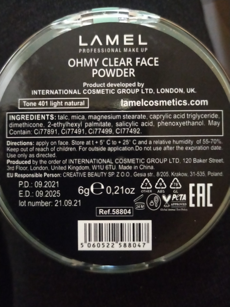 Lamel Пудра для лица антибактериальная, оттенок 401 Light natural