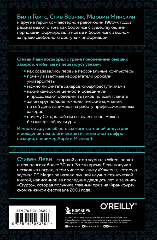 Хакеры. Как молодые гики провернули компьютерную революцию и изменили мир раз и навсегдаВ данный момент этот товар отсутствует в продаже. Возможно, у нас найдется аналогичный или похожий товар здесь. Серия: КиберБез. Лучшие книги о безопасности в сети Билл Гейтс, Стив Возняк, Марвин Минский и другие герои компьютерной революции 1980-х годов рассказывают о том, как боролись с существующими порядками, формировали новые и боролись с законом за право свободного доступа к информации. |