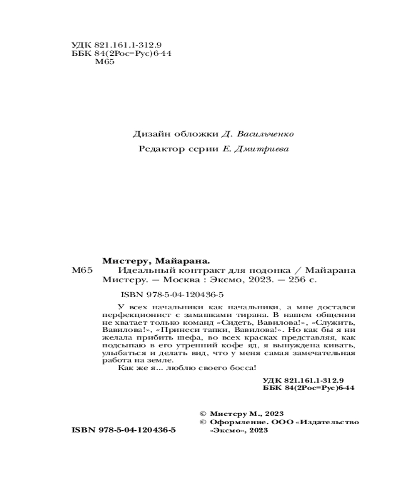 Идеальный контракт для подонкаВ данный момент этот товар отсутствует в продаже. Возможно, у нас найдется аналогичный или похожий товар здесь. Серия: Мой любимый босс Сетевой бестселлер, более 700 000 прочтений. |