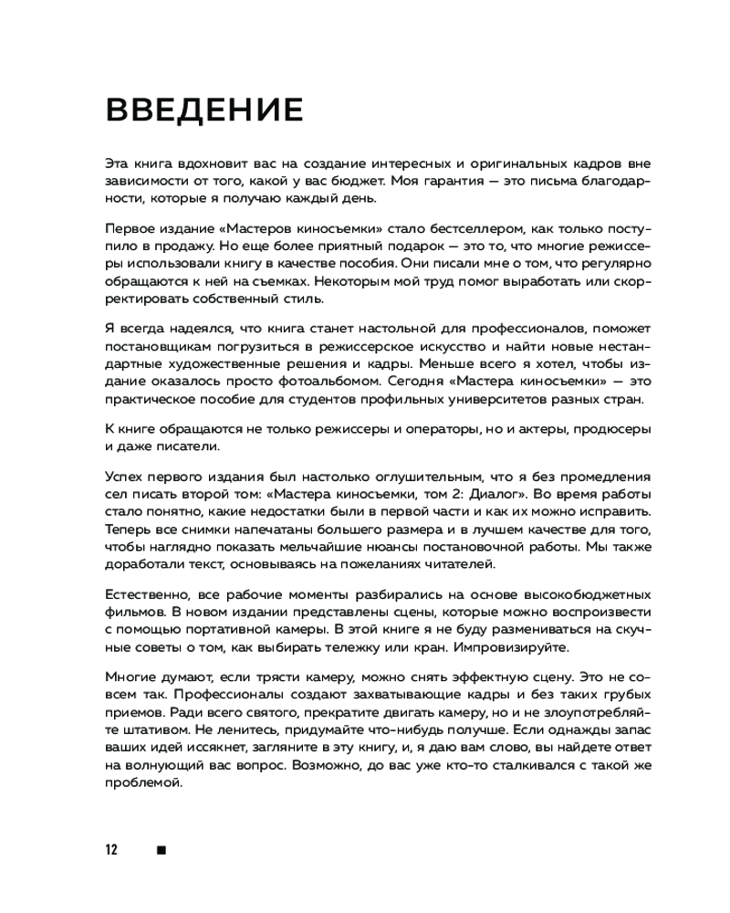 Это настольная книга как для новичков, так и профессионалов, которая поможет погрузиться в искусство кинематографа и отыскать нестандартные художественные приемы для съемки фильмов. Здесь собраны методы, которые помогут вам сделать сложные и оригинальные кадры при любом бюджете.