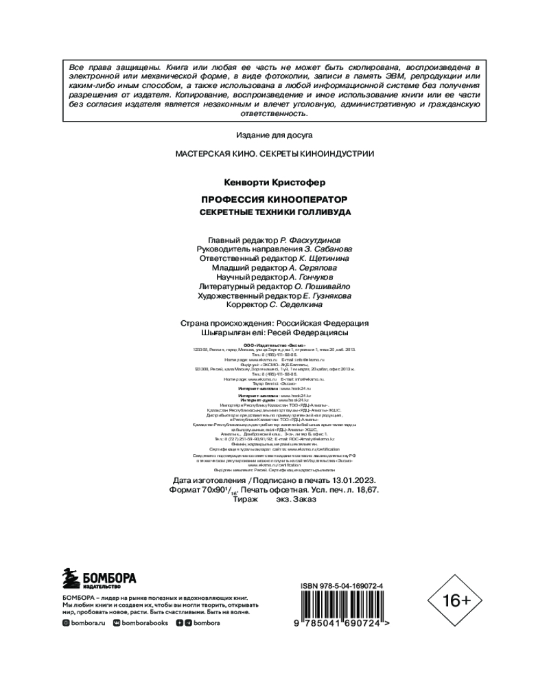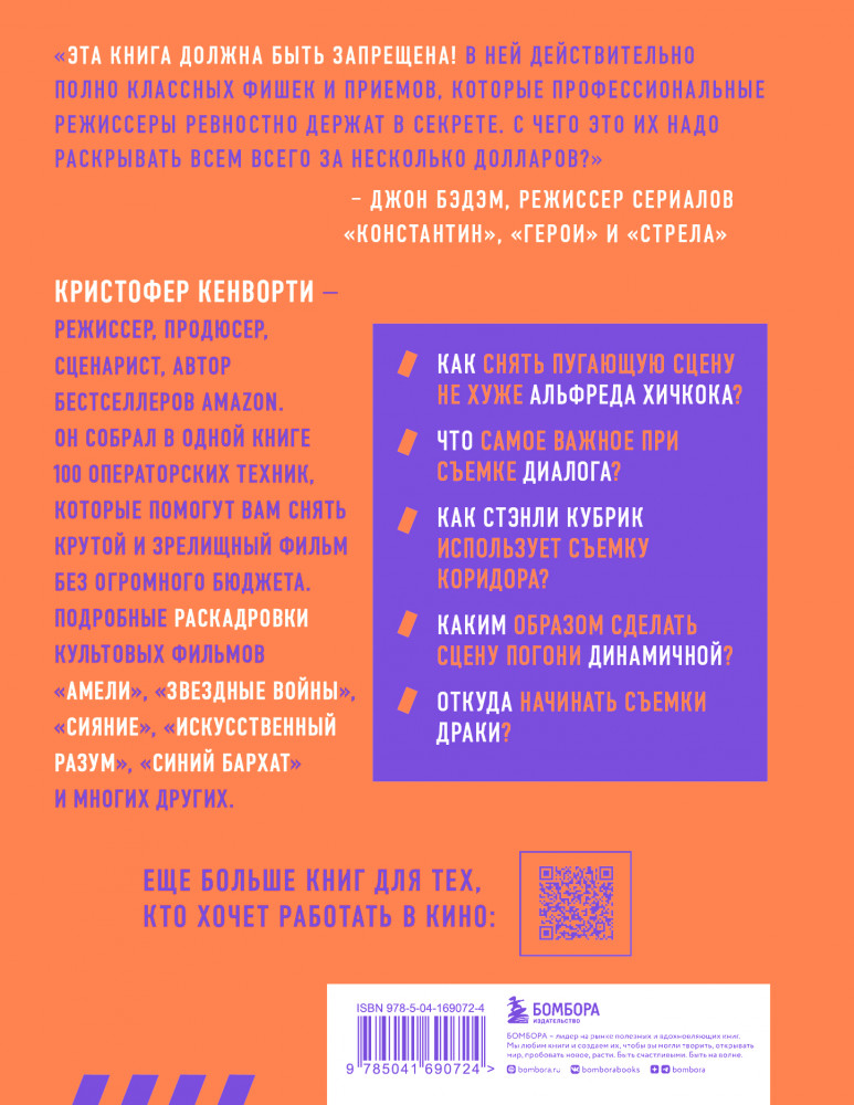 Серия: Мастерская кино. Секреты киноиндустрии «Эта книга должна быть запрещена! В ней действительно полно классных фишек и приемов, которые профессиональные режиссеры ревностно держат в секрете. С чего это их надо раскрывать всем всего за несколько долларов?» — Джон Бэдэм, режиссер сериалов «Константин», «Стрела» и «Герои»