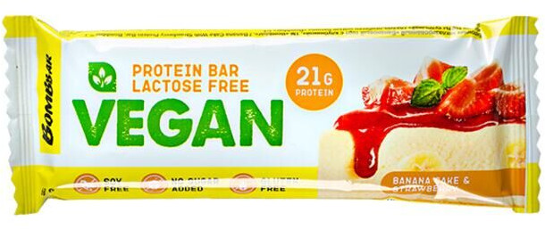 Bombbar Батончик протеиновый веганский «Банановый торт с клубникой»