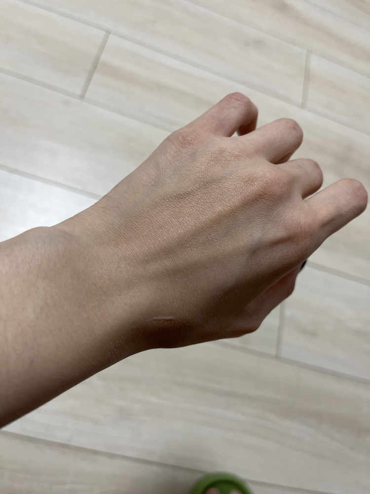 Оттенок лёгкий бежевый совсем не бежевый, очень светлый, скорее фарфоровый. Ложится плотно, хорошо скроет покраснения, под глазами забивается в складки, быстро застывает, поэтому надо быстро вбить его спонжем. Со временем приноровилась пользоваться им, возможно буду брать ещё, но больше для того, чтоб замазывать покраснения на лице, с этим он справляется отлично.