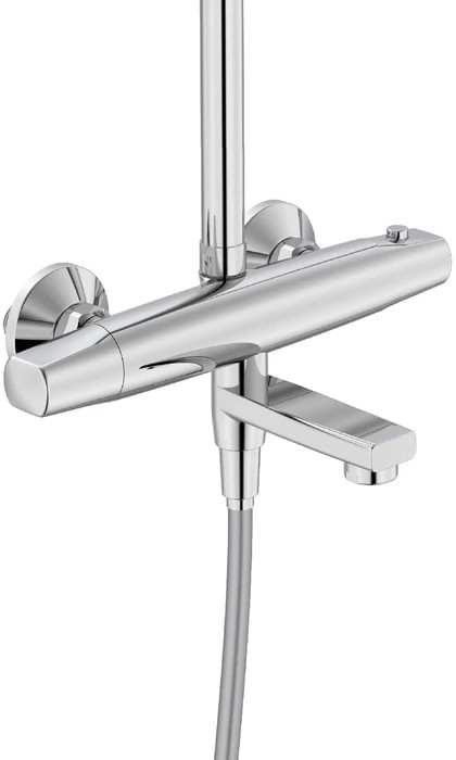 Смеситель для ванны Torr с термостатом и верхним душем — универсальный дизайн при современном функционале, оптимальный для городской квартиры и загородного дома. Термостат позволяет сэкономить время на настройке нужной температуры воды при каждом включении, при этом полностью защищает от ожогов, связанных с перепадами давления и температуры воды в сети. Две лейки большого диаметра — верхняя Ø229 мм и ручная Ø110 мм — создают объемный и приятный для тела поток воды. Смеситель привнесет максимум комфорта в привычные душевые процедуры. В комплекте гибкий душевой шланг с защитой от перекручивания и крепеж.