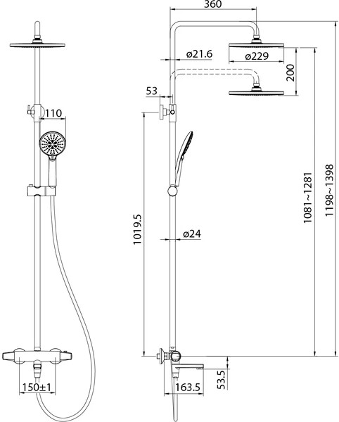 Регулируемая высота стойки (1,2-1,4 м) позволяет с комфортом принимать душ даже самым высоким. Керамический дивертор переключается поворотом излива и надежно переключает поток воды на верхнюю и ручную лейки или обеспечивает их одновременную работу в комбинированном режиме. Г