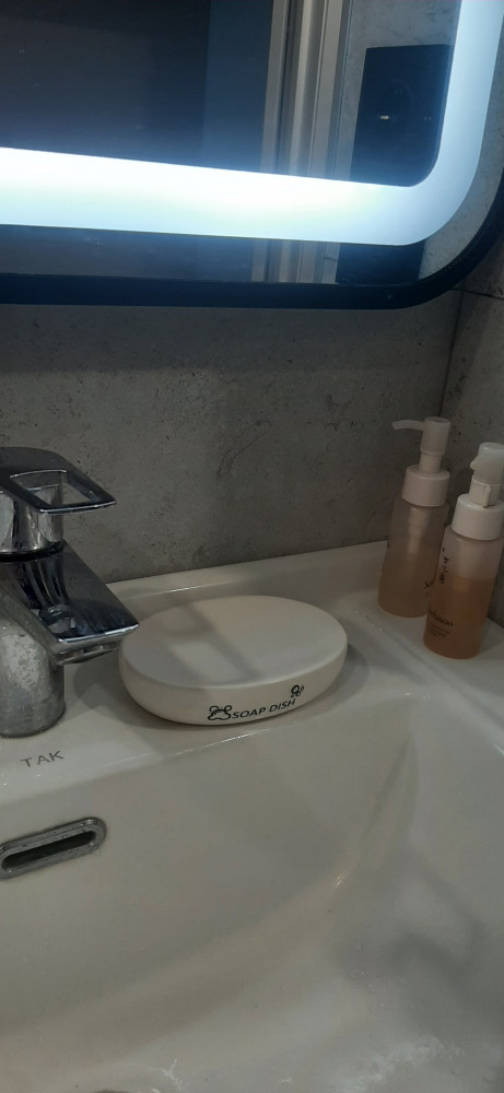стильная, симпатичная, брала в комплекте со стаканчиками для зубных щеток, смотрится очень органично