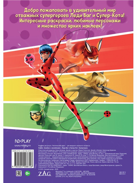 В данный момент этот товар отсутствует в продаже. Возможно, у нас найдется аналогичный или похожий товар здесь. Серия: Леди Баг и Супер-Кот Серия книг «Альбом с наклейками» − это большие альбомы с популярными детскими брендами, раскраски и развивающие задания. В альбоме «Леди Баг и Супер-Кот» детей ждут отважные супергерои, которые приготовили много сюрпризов. Ребенок будет раскрашивать любимых персонажей, приклеивать недостающие части костюмов и дополнять картинки по смыслу с помощью наклеек.