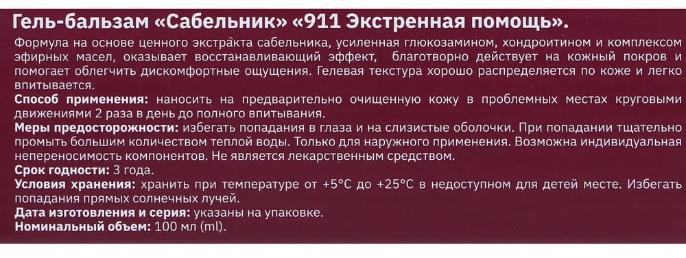 💳 Оплатить за товар можно при получении 🇰🇿 Есть бесплатная доставка по Казахстану от 1 дня 🎁 Копите бонусы с каждой покупки Серия: 911 Экстренная помощь Формула на основе ценного экстракта сабельника, усиленная глюкозамином, хондроитином и комплексом эфирных масел, оказывает восстанавливающий эффект, благотворно действует на кожный покров и помогает облегчить дискомфортные ощущения. Гелевая текстура хорошо распределяется по коже и легко впитывается. |