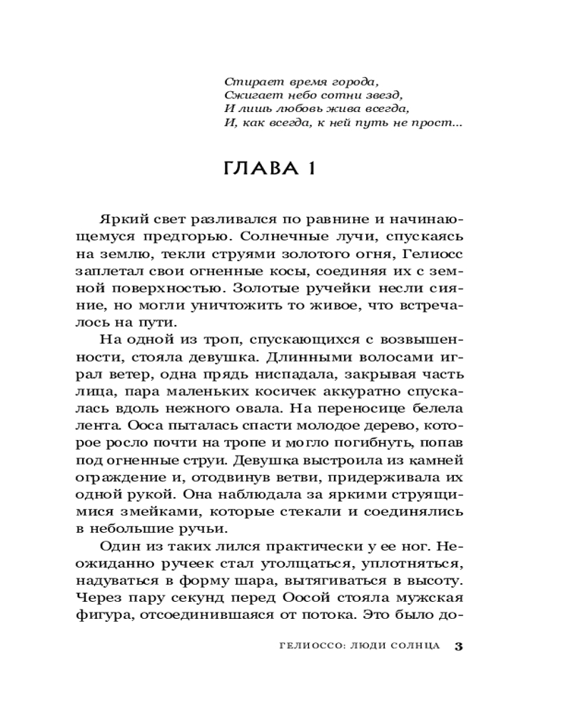 Серия: Фантастический цикл «Гелиоссо» Планета Земля. 2222 год. Юная героиня Ооса знакомится с гелиоссом, потомком Солнца по имени Даас. Их опасному сближению препятствует множество факторов — физические различия, традиции, чувство долга... Кроме того, Планета, подвергшаяся нападению Существа, находится на краю гибели. |