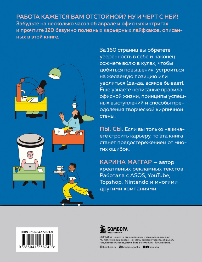 💳 Оплатить за товар можно при получении 🇰🇿 Есть бесплатная доставка по Казахстану от 1 дня 🎁 Копите бонусы с каждой покупки Серия: Книги-драйверы Работа кажется вам отстойной? Ну и черт с ней! Забудьте на несколько часов об аврале и офисных интригах и прочтите 120 безумно полезных карьерных лайфхаков, описанных в этой книге. |