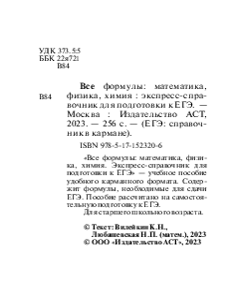 Все формулы: математика, физика, химия. Экспресс-справочник для подготовки к ЕГЭВ данный момент этот товар отсутствует в продаже. Возможно, у нас найдется аналогичный или похожий товар здесь. Серия: ЕГЭ: справочник в кармане «Все формулы: математика, физика, химия. Экспресс-справочник для подготовки к ЕГЭ» — учебное пособие удобного карманного формата. Содержит формулы, необходимые для сдачи ЕГЭ. Пособие рассчитано на самостоятельную подготовку к ЕГЭ. |