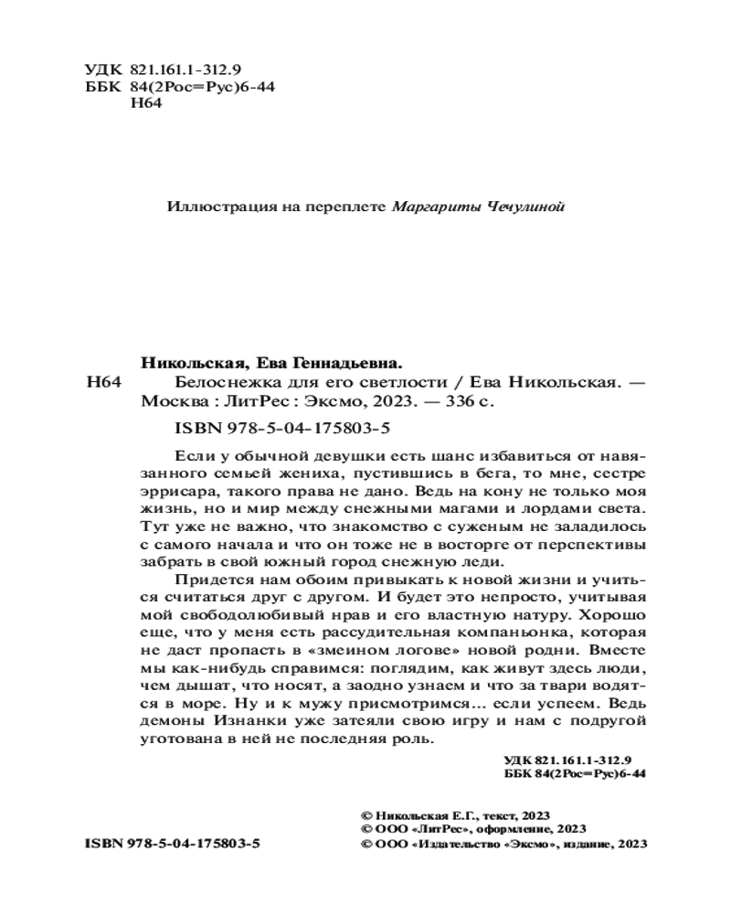 Белоснежка для его светлости-20% +37 твердый переплет аккуратность стиль