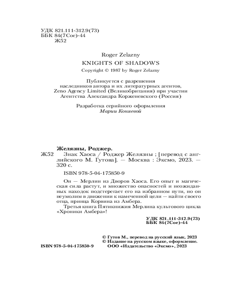💳 Оплатить за товар можно при получении 🇰🇿 Есть бесплатная доставка по Казахстану от 1 дня 🎁 Копите бонусы с каждой покупки Серия: Эксклюзивная фантастика Он — Мерлин из Дворов Хаоса. Его опыт и магическая сила растут, и множество опасностей и неожиданных находок подстерегает его на избранном пути, но он неумолим в движении к намеченной цели — найти своего отца, принца Корвина из Амбера. |