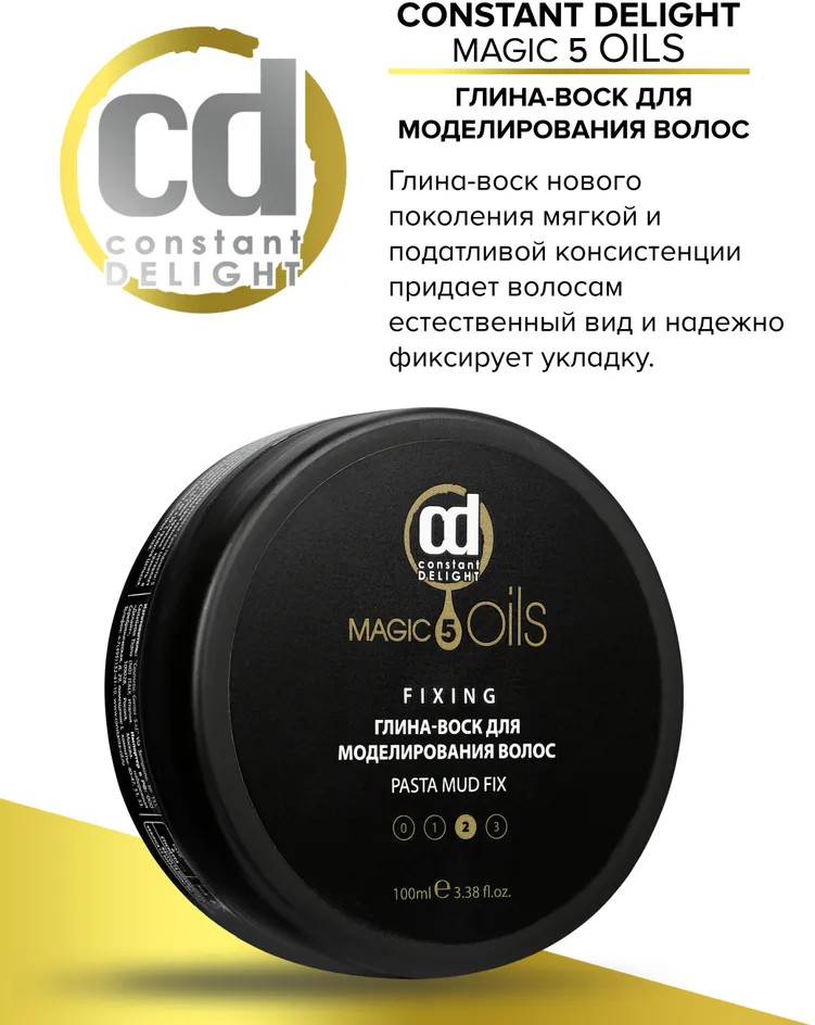 Constant Delight Глина-воск для волос средней фиксацииВ данный момент этот товар отсутствует в продаже. Возможно, у нас найдется аналогичный или похожий товар здесь. Серия: Magic 5 oils Глина-воск нового поколения мягкой и податливой консистенции придает волосам естественный вид и надежно фиксирует укладку. Его формула из пяти масел: макадамии, хлопка, жожоба, авокадо, арганы, питает волосы и возвращает им жизненную силу, энергию и блеск. |