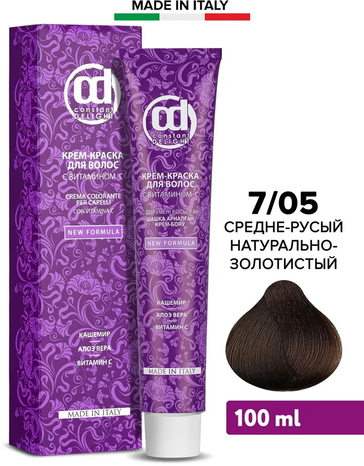 Constant Delight Крем-краска для волос с витамином С, оттенок 7/05 Средне-русый натурально-золотистый