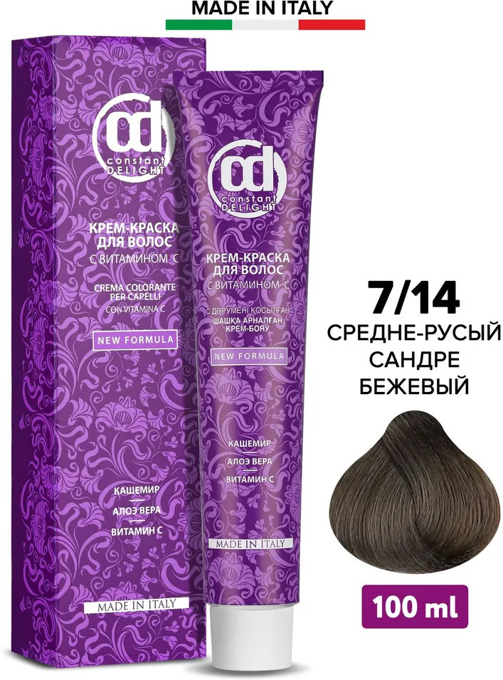 Constant Delight Крем-краска для волос с витамином С, оттенок 7/14 Средне-русый сандре бежевый