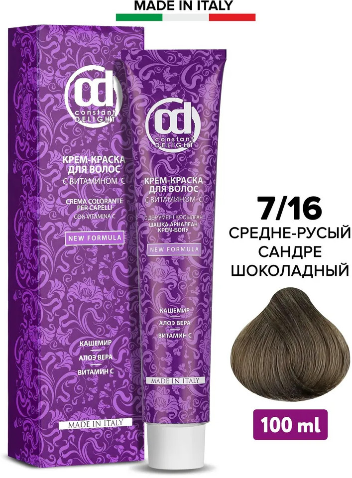 Constant Delight Крем-краска для волос с витамином С, оттенок 7/16 Средне-русый сандре шоколадный