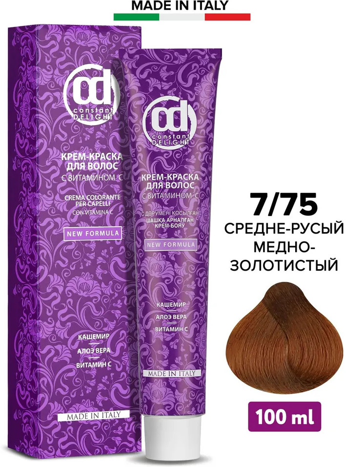 Constant Delight Крем-краска для волос с витамином С, оттенок 7/75 Средне-русый медно-золотистый
