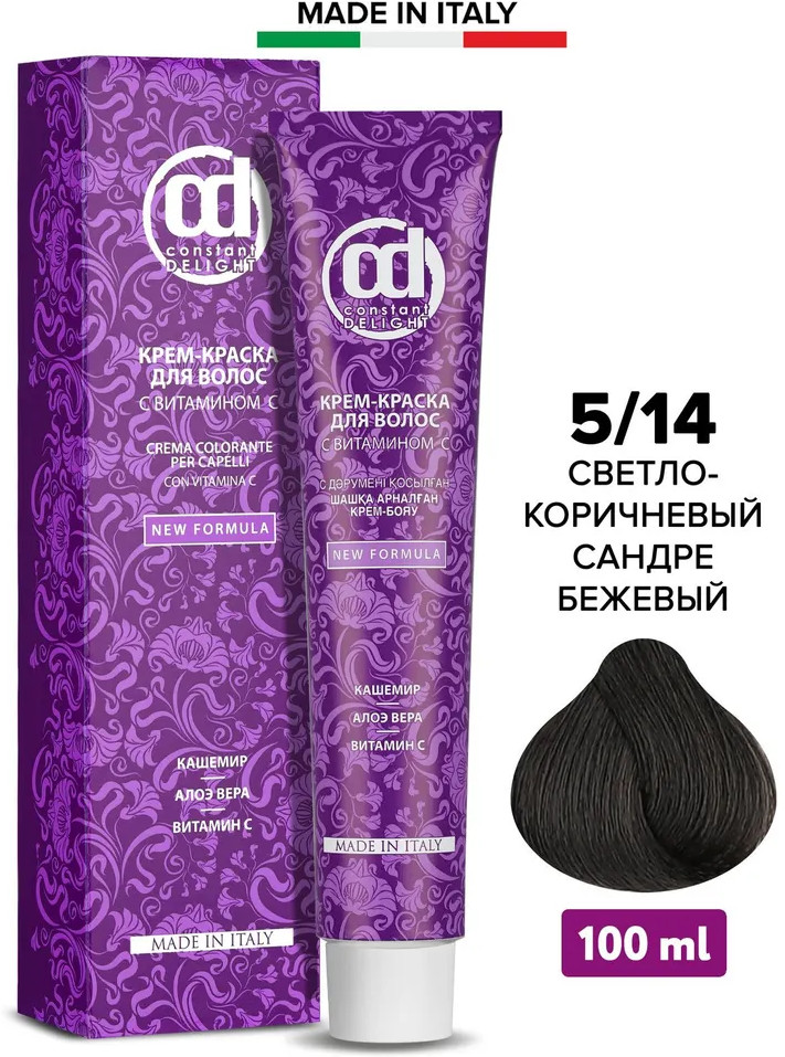 Constant Delight Крем-краска для волос с витамином С, оттенок 5/14 Светло-коричневый сандре бежевый