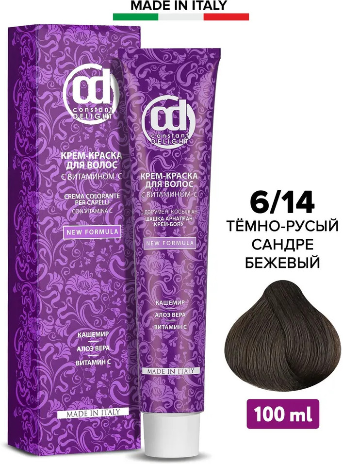 Constant Delight Крем-краска для волос с витамином С, оттенок 6/14 Тёмно-русый сандре бежевый