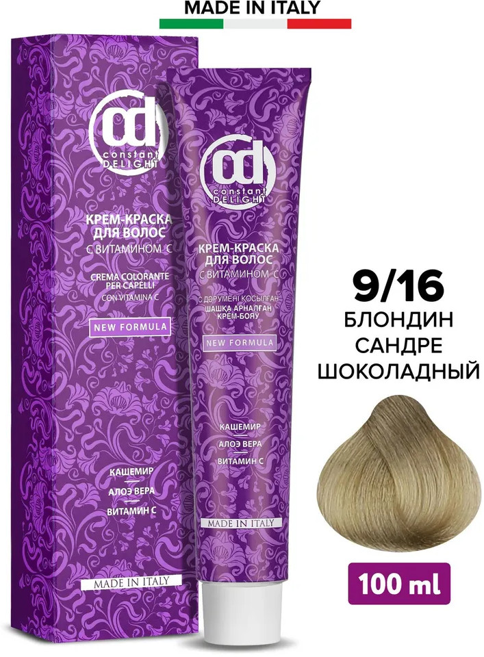 Constant Delight Крем-краска для волос с витамином С, оттенок 9/16 Блондин сандре шоколадный