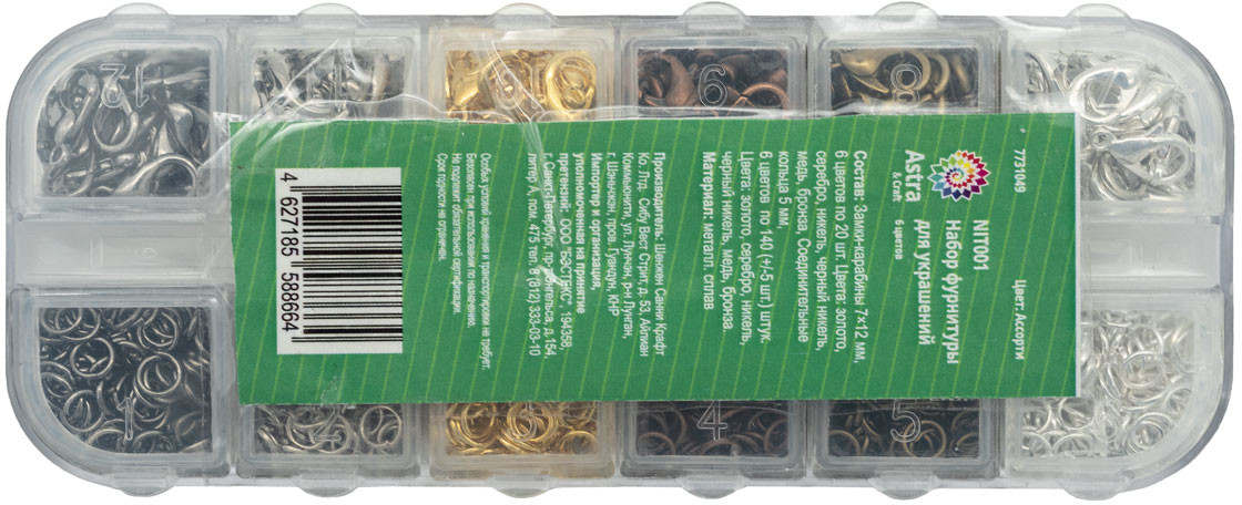 💳 Оплатить за товар можно при получении 🇰🇿 Есть бесплатная доставка по Казахстану от 1 дня 🎁 Копите бонусы с каждой покупки В этом наборе вы найдете важные вспомогательные элементы для создания бижутерии, а также ремонта готовых украшений. С помощью разъемных колечек вы соберете бусины в один ряд, зафиксируете подвеску или застежку на шнуре или основе. Карабин — удобный элемент для оформления застежки на украшении. |