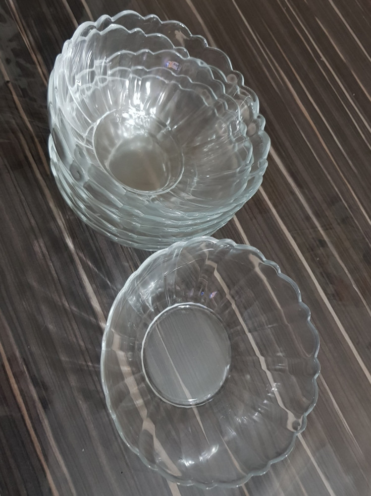 Мне пришел прозрачный блестящий. Форма очень хорошая. Размер как раз на 2-3 человек. На удивление очень тонкий и легкий, несмотря на то, что это ударопрочное стекло. На обычный (не праздничный) стол очень удобный салатник, лаконичный, но в то же время красивый. В принципе на праздничный тоже пойдет. Очень довольна. Идеальное соотношение цены и качества.