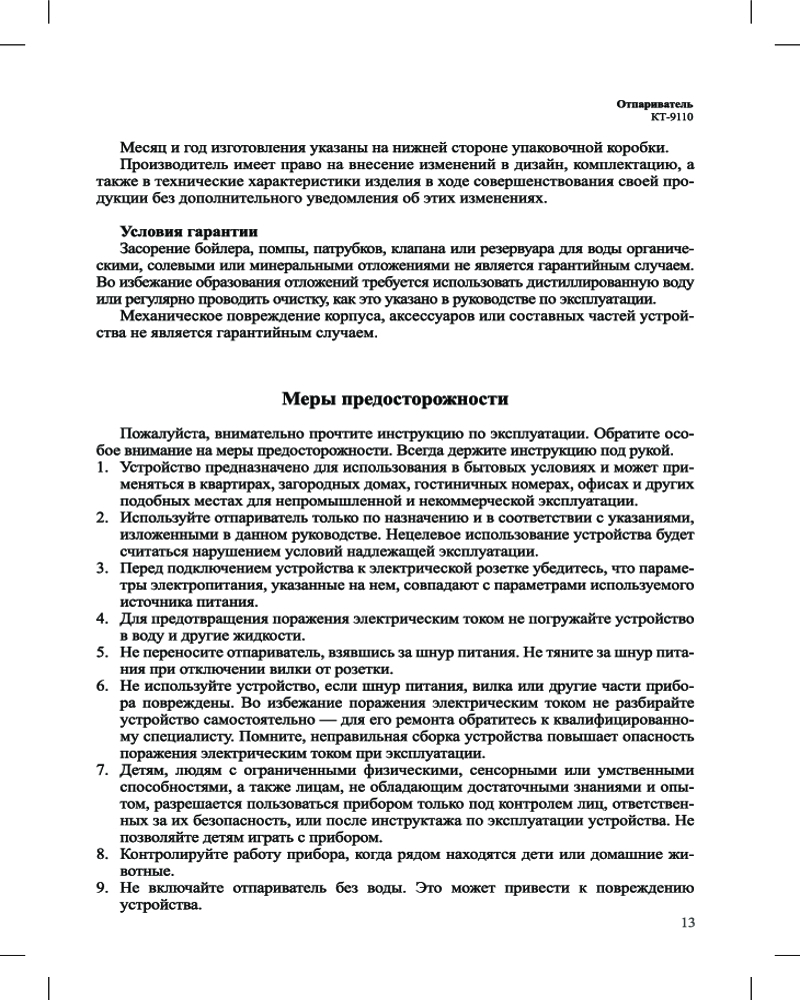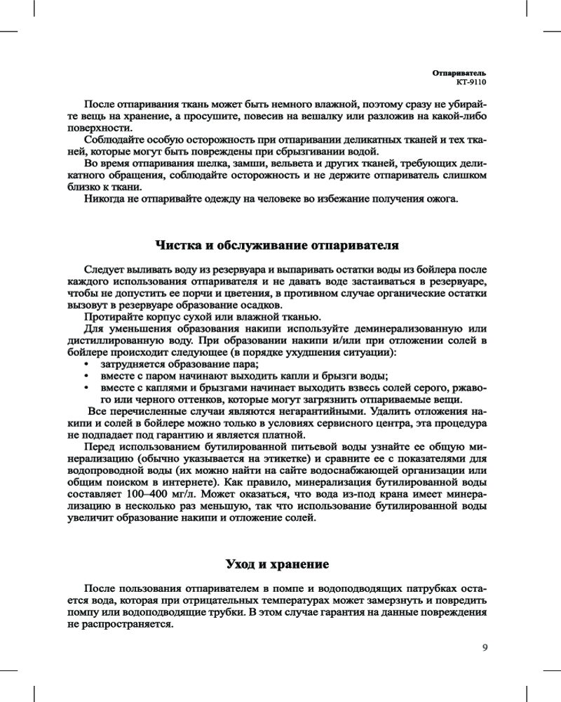 У КТ-9110 небольшой корпус, поэтому он не займёт много места во время работы и при хранении.