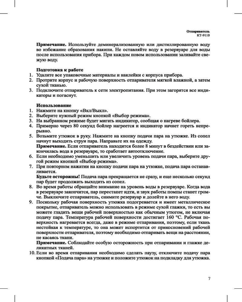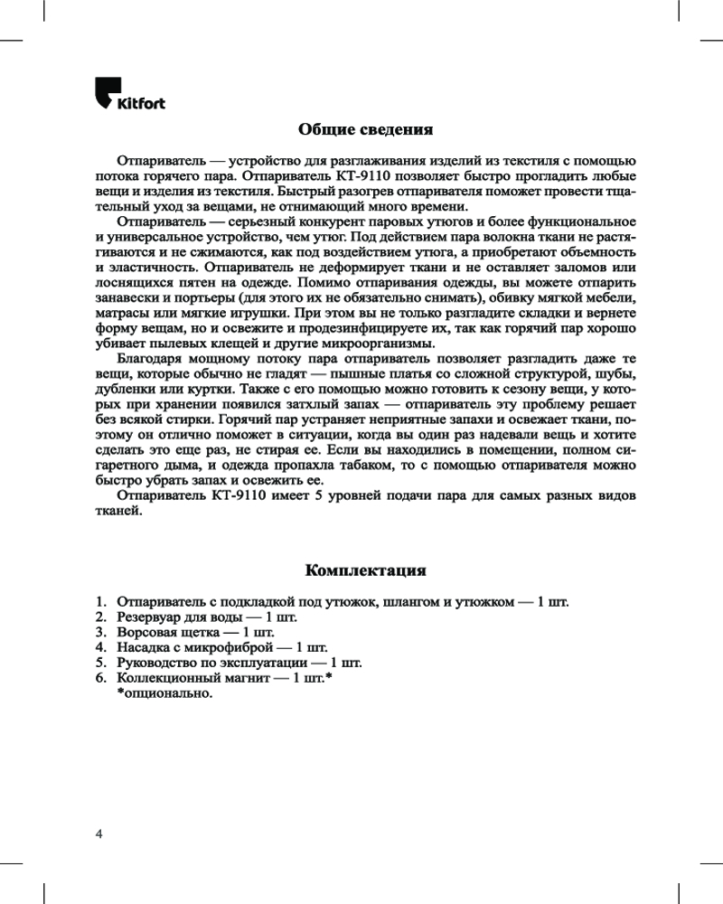Отпариватель КТ-9110 — это устройство для разглаживания изделий из текстиля с помощью потока горячего пара. Быстрый разогрев поможет провести тщательный и оперативный уход за вещами. А благодаря мощной струе пара прибор проводит чистку и дезинфекцию.