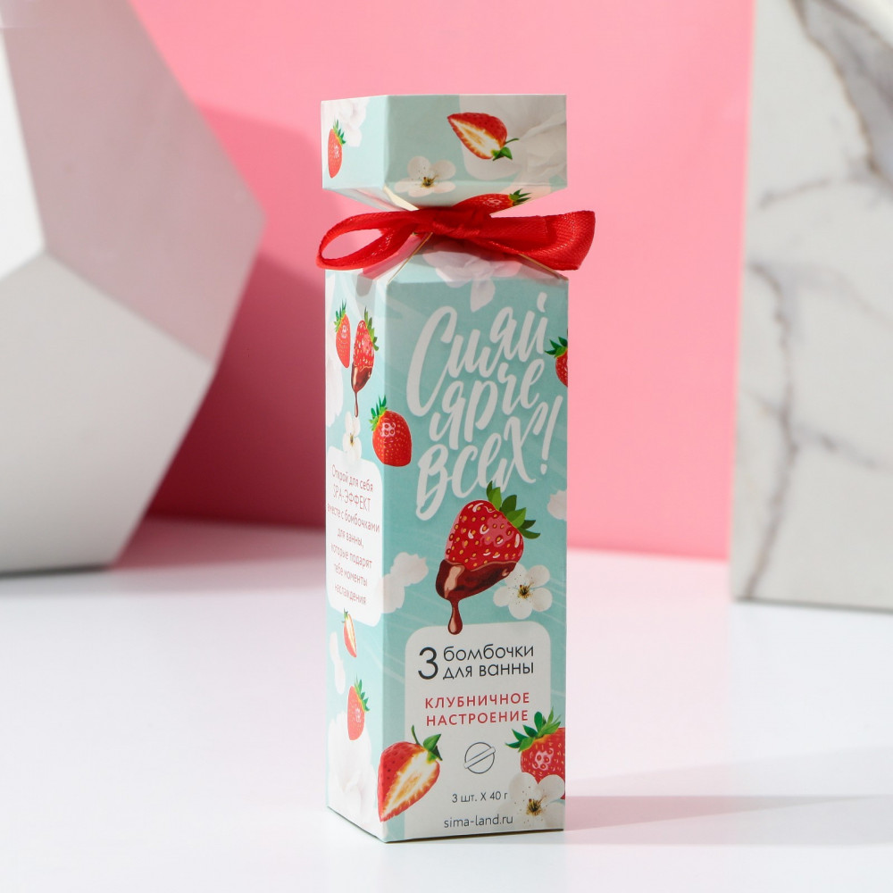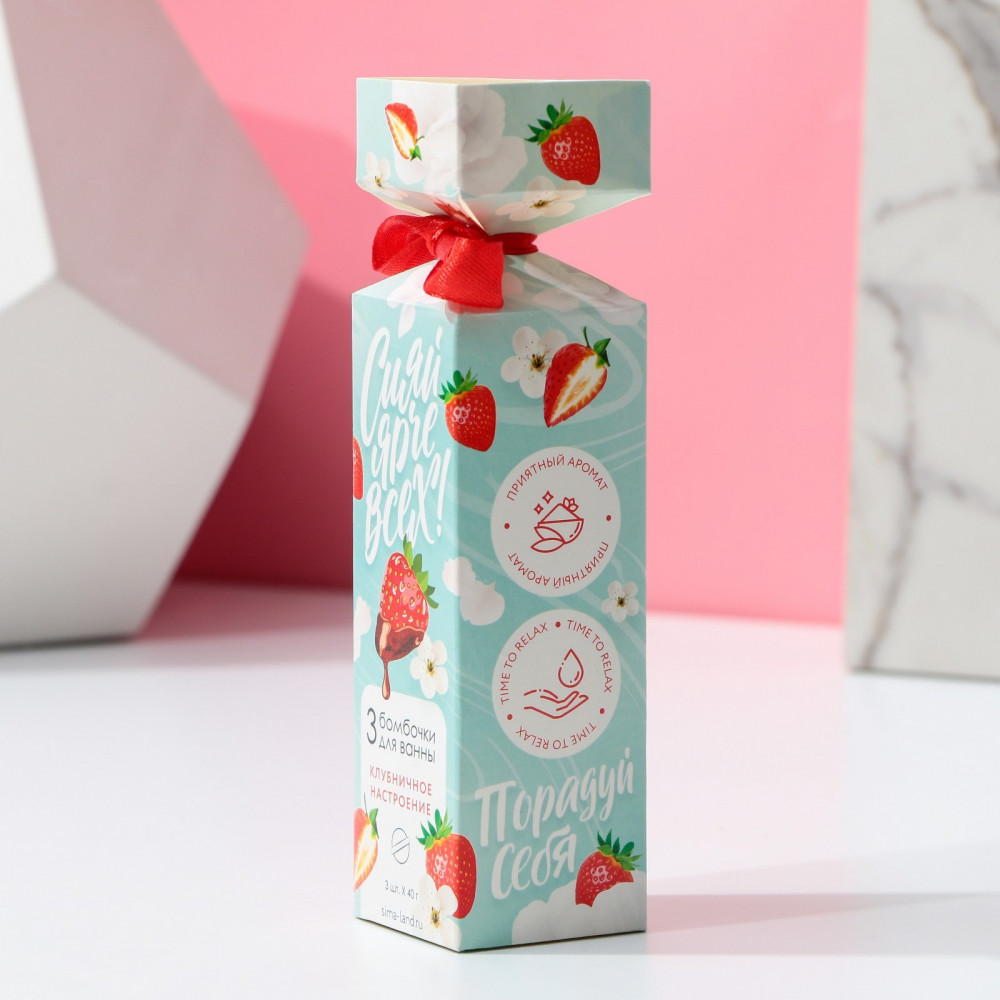 Чистое счастье Набор бомбочек для ванны «Сияй ярче всех!»мелкие шарики В данный момент этот товар отсутствует в продаже. Возможно, у нас найдется аналогичный или похожий товар здесь. Серия: 8 Марта Набор бомбочек для ванны «Сияй ярче всех!» — это удачная идея для подарка или небольшого комплимента без повода. Оригинальная упаковка и аромат клубники никого не оставят равнодушным. С этим набором принятие ванны превратится в настоящий ритуал красоты. Необычное средство поможет расслабиться и получить удовольствие от купания. |