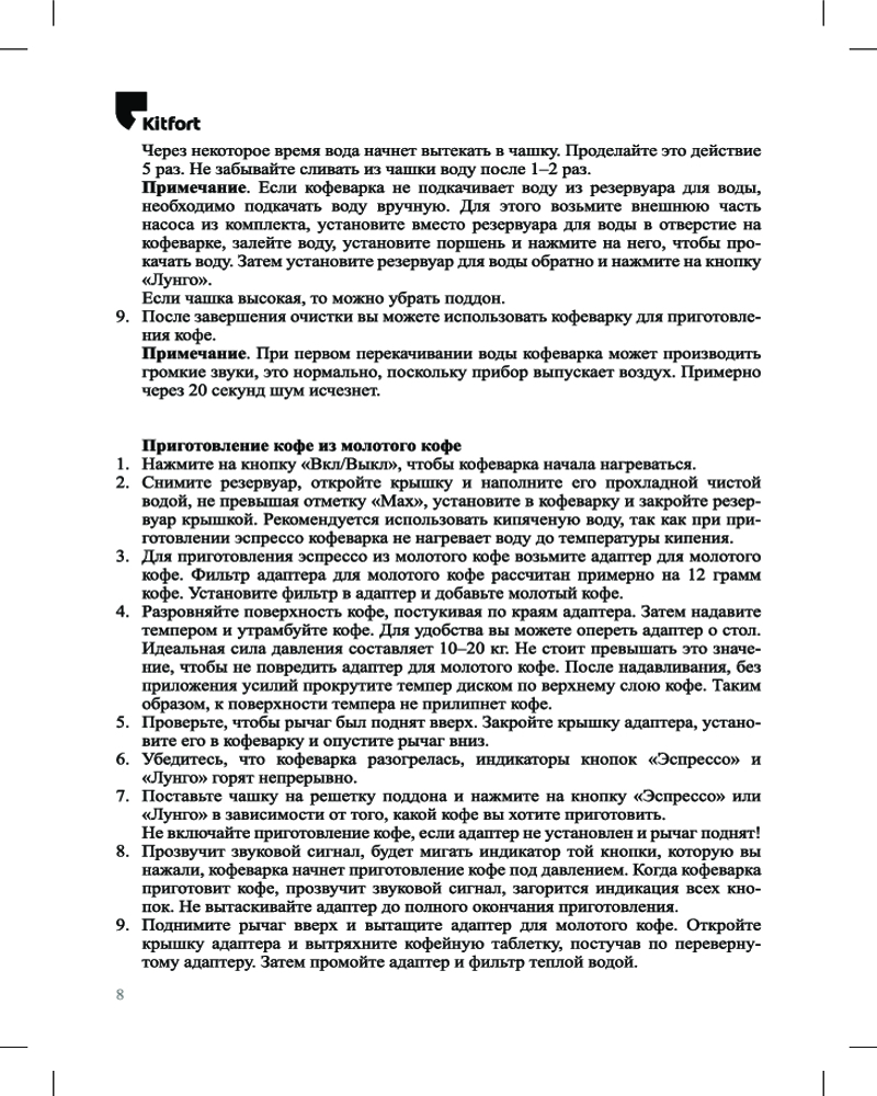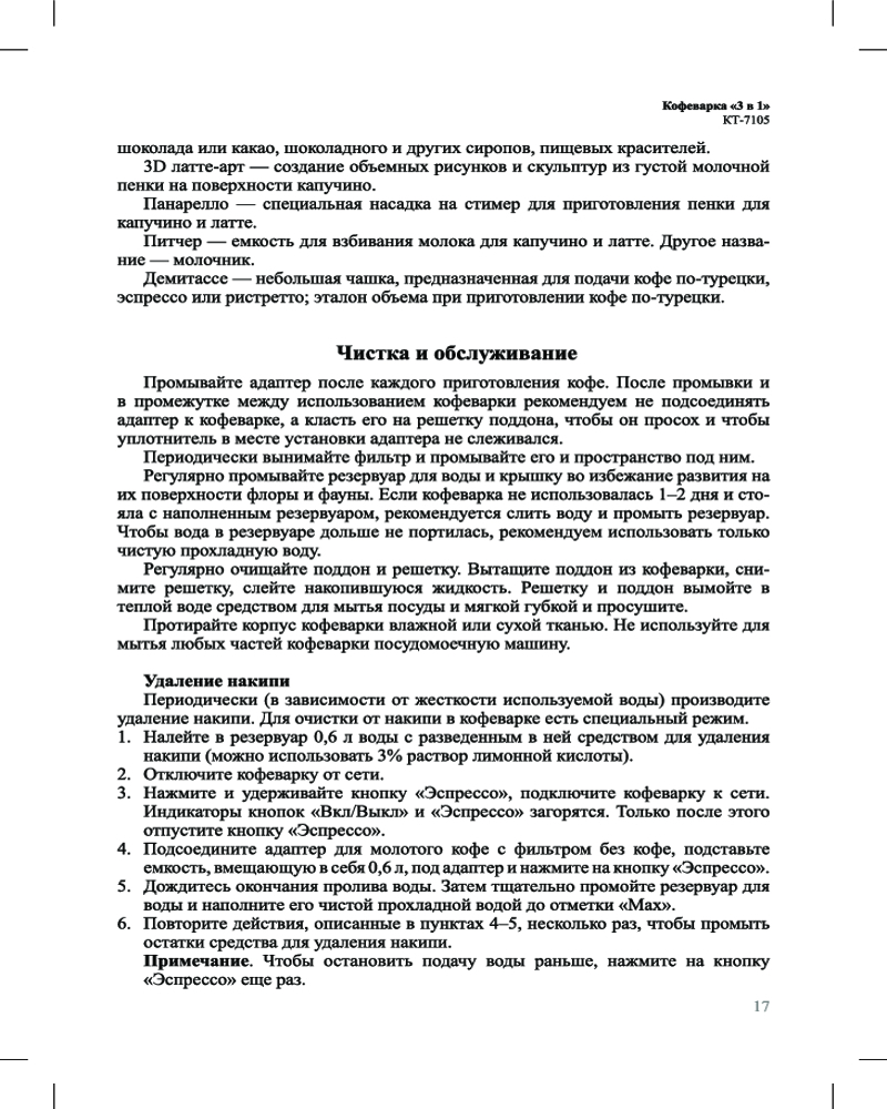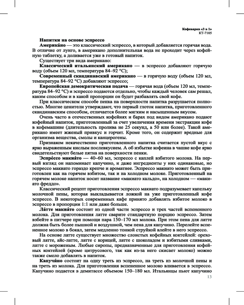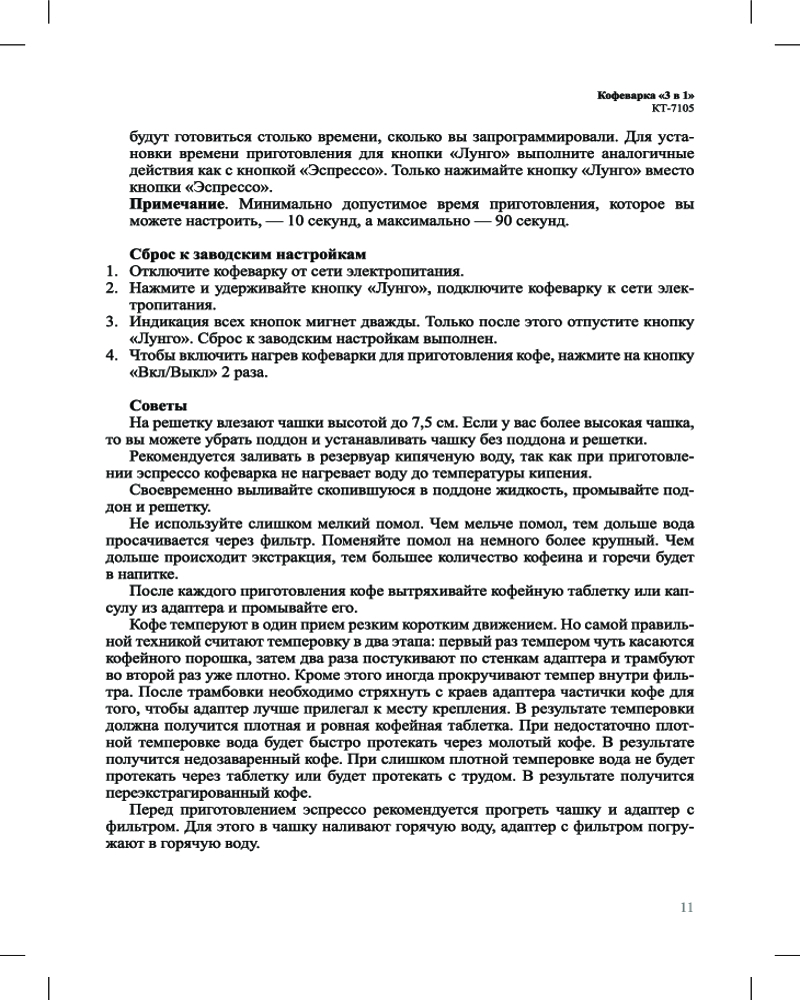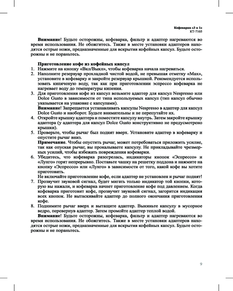 Кофеварка КТ-7105 — это многофункциональное устройство, сочетающее в себе функции капсульной и рожковой кофеварки. Она поможет приготовить кофе эспрессо, американо или лунго, а также множество других видов кофе на ваш вкус.