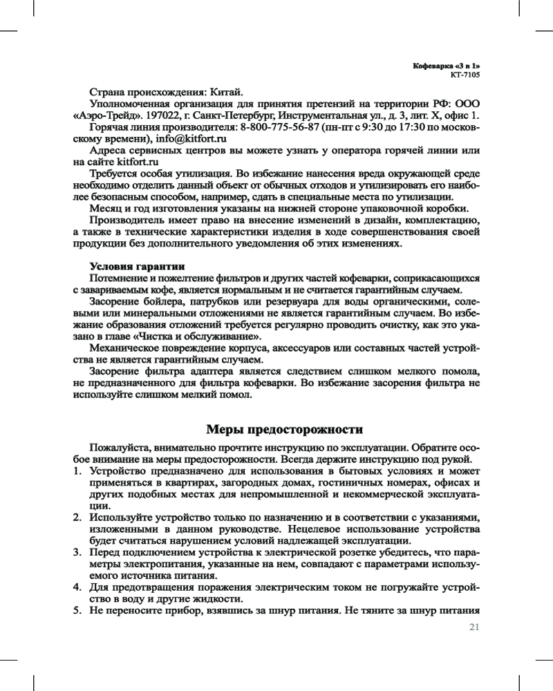 | Kitfort Кофеварка КТ-7105-2+1835 (бонусов)