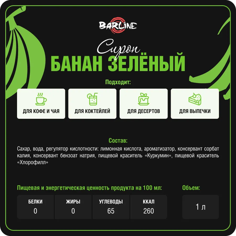 Barline Сироп со вкусом зелёного банана «Green banana»