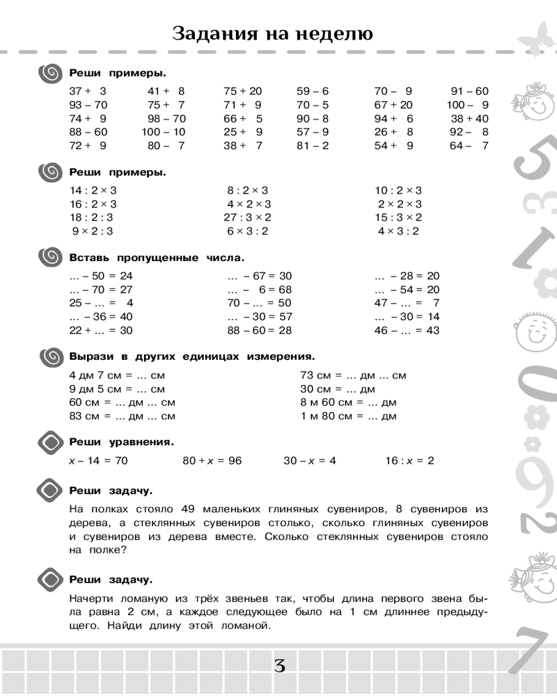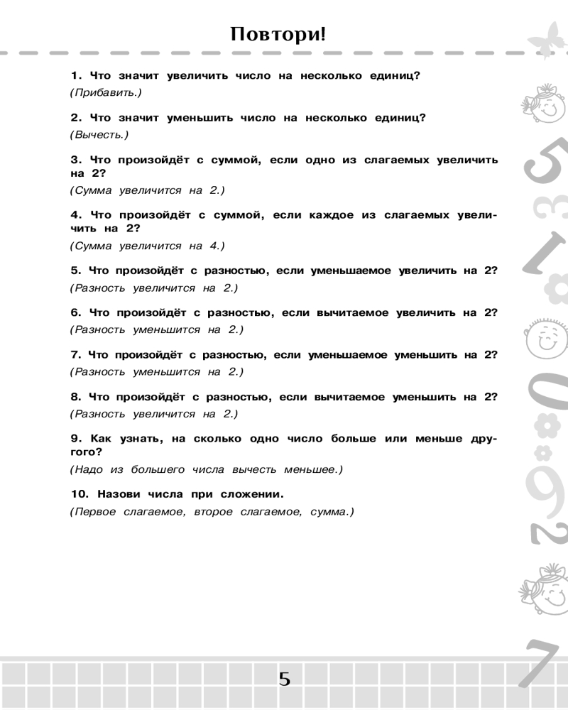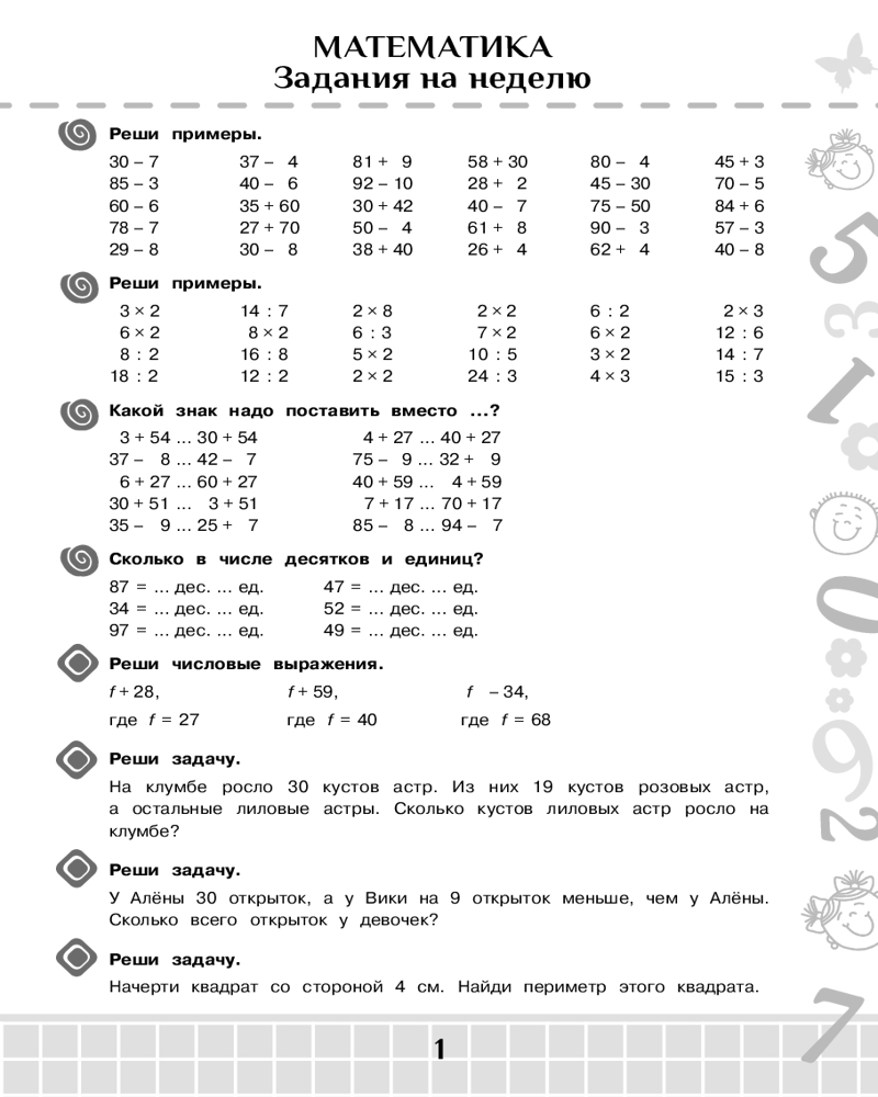 Если ребёнок в течение недели будет ежедневно тратить хотя бы 15 минут в день на выполнение задания, то он успешно повторит пройденный за год материал и легко начнёт учебные занятие в сентябре.