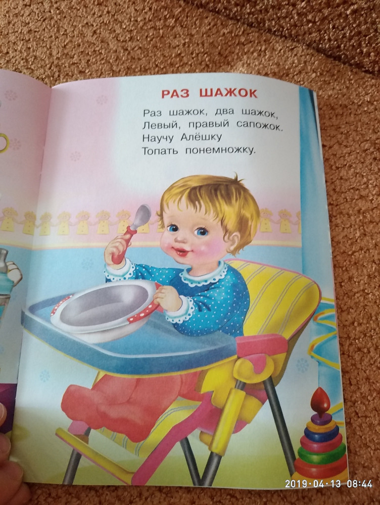 Книжечка хорошая, иллюстрации яркие, нарисованы хорошо. Стихи просты и понятны, читала дочке месяцев с 3х. Купила всю серию. Взяла в подарок и для дочки подруги.