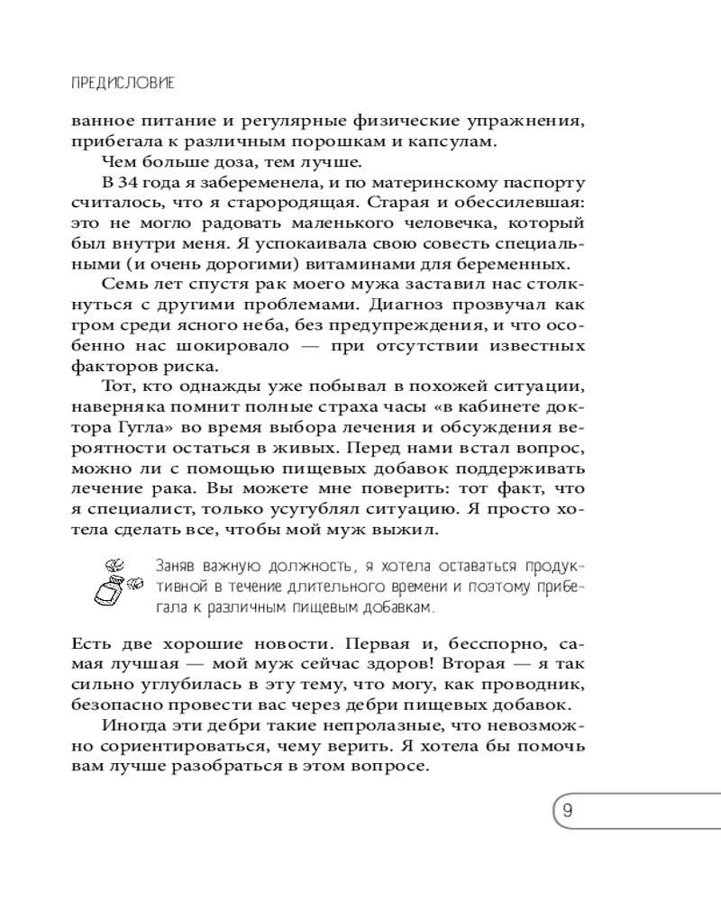 «В этой книге автор делится своими знаниями и профессиональным опытом в области качества и безопасности БАД в пище. Это своевременная, нужная и очень актуальная книга — путеводитель в бескрайнем мире современного ассортимента пищевых добавок, изложенная доступно и очень интересно.