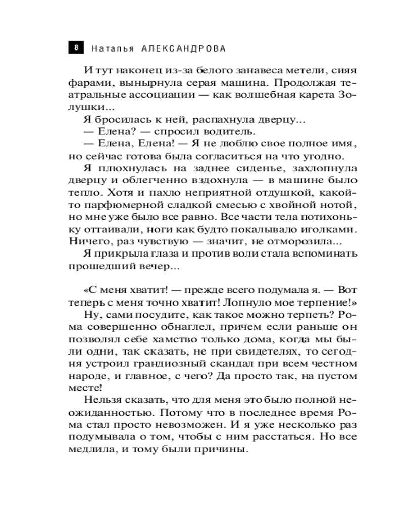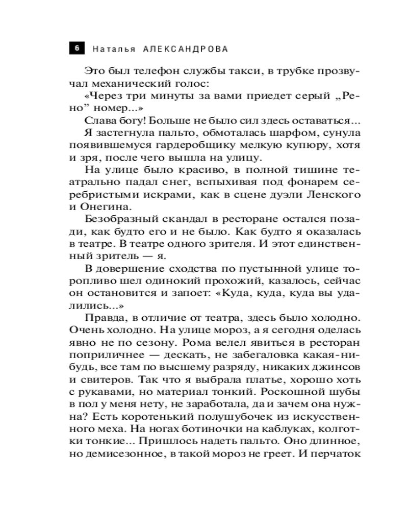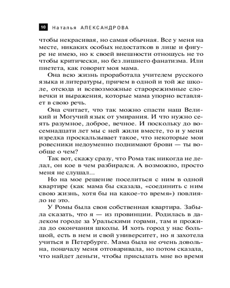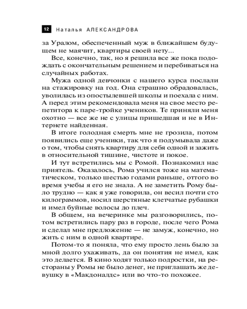 За несколько лет упорной работы Наталья Александрова успела написать около шестидесяти романов, в которых на пятнадцати тысячах страниц появилось примерно пятьсот второстепенных героев, восемь главных героев и шесть наиглавнейших - кошек, собак и... |