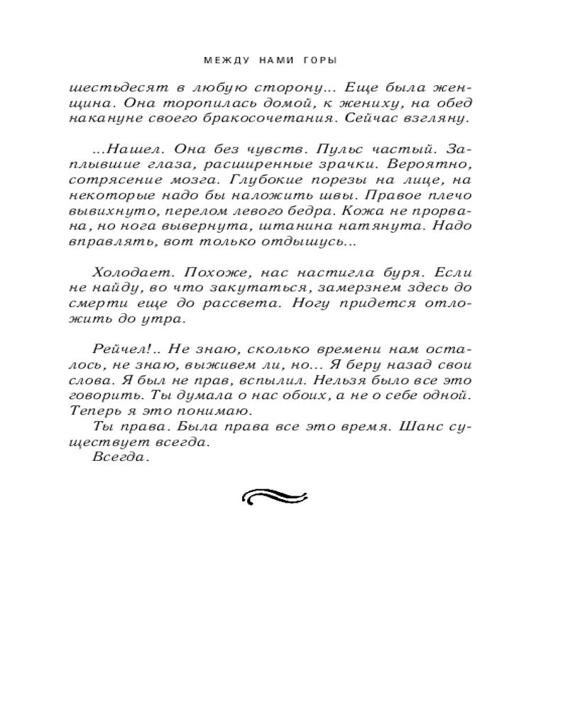 Между нами горылегкий слог интересная история любовная история В данный момент этот товар отсутствует в продаже. Возможно, у нас найдется аналогичный или похожий товар здесь. Серия: Магистраль. Главный тренд В окруженном горами аэропорте Солт-Лейк-Сити отменены все рейсы из-за непогоды. Двое случайных знакомых, Бен Пейн и Эшли Нокс, решают лететь на маленьком частном самолете. Эшли опаздывает на собственную свадьбу, а хирург Бен — на важную операцию. К несчастью, самолет терпит крушение в горах. Пилот погибает, и два пассажира остаются наедине друг с другом среди заснеженных вершин. Чтобы спастись, им придется совершить невозможное. |
