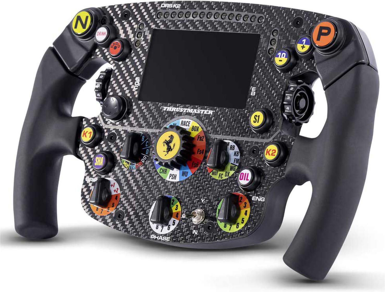 В данный момент этот товар отсутствует в продаже. Возможно, у нас найдется аналогичный или похожий товар здесь. Новейшая разработка, ставшая результатом многолетнего сотрудничества компаний Thrustmaster и Ferrari, этот продукт является полномасштабной репликой руля знаменитого одноместного гоночного автомобиля Ferrari SF1000. На руле Thrustmaster Formula Wheel Add-On Ferrari SF1000 Edition нанесены легендарные логотипы и официальные обозначения, которые имеются на настоящем руле, а также установлен жидкокристаллический IPS-дисплей 109 мм, отображающий до 69 элементов информации о гонке.