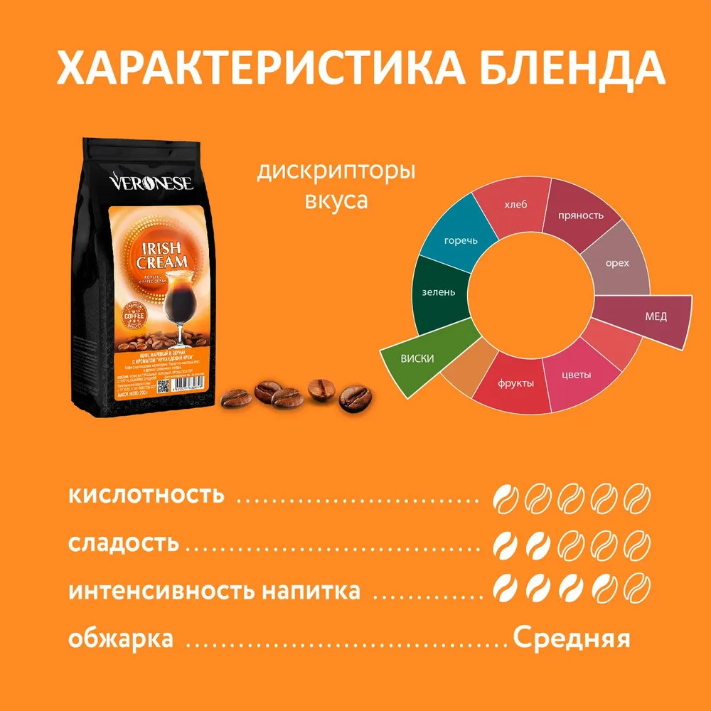 Хороший кофе, чувствуется вкус карамели. Добавляю в кофемолке с обычным эспрессо. После варки в кофемашине получается вкусный, с густой пенкой