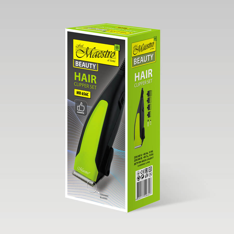 Feel Maestro Машинка для стрижки MR-656Схорошо подстригает сильная вибрация В данный момент этот товар отсутствует в продаже. Возможно, у нас найдется аналогичный или похожий товар здесь. Машинка для стрижки Feel Maestro MR-656С — это профессиональный инструмент для домашнего использования. Он оснащен мощным двигателем 220-240В, ~50Гц, 15Вт, керамическими лезвиями и обеспечивает сверхтихую работу. В комплекте поставки вы найдете масло для смазки ножей, щетку для чистки машинки и четыре сменных гребня (3,6,9,12). Этот инструмент поможет вам поддерживать ваш внешний вид и придаст вам уверенность в себе. |