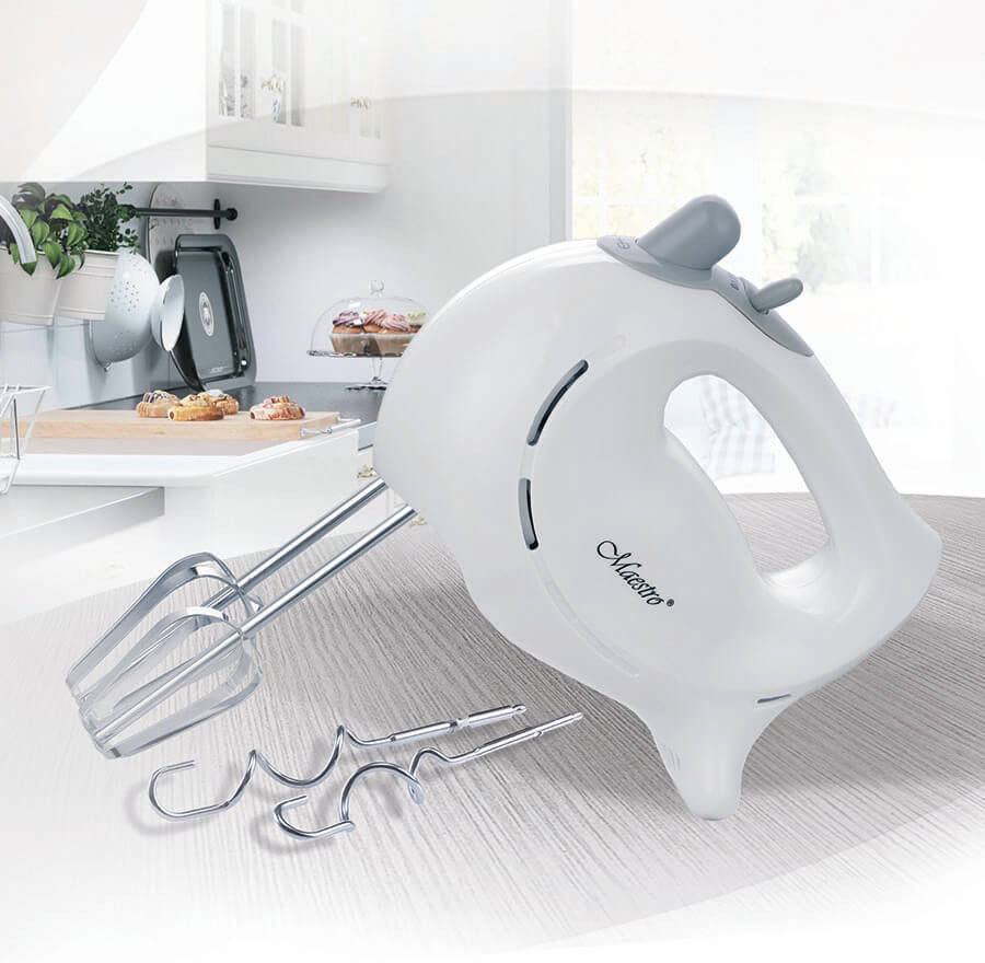 Миксер Feel Maestro MR-502 — это профессиональное кухонное оборудование, которое поможет вам приготовить вкусные блюда и десерты. Он имеет современный и эргономичный дизайн, а также 7 скоростных режимов. Кроме того, он оснащен двумя венчиками для взбивания крема и яиц, а также двумя насадками для замеса густого теста. Также, он имеет кнопку освобождения насадок. Миксер подключается к сети 220-240 В и имеет мощность 300 Вт.