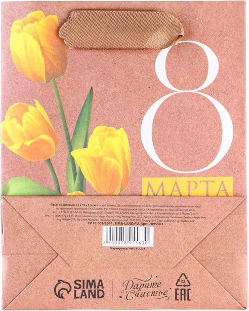 Дарите Счастье Пакет подарочный «Тюльпаны»-50% +9