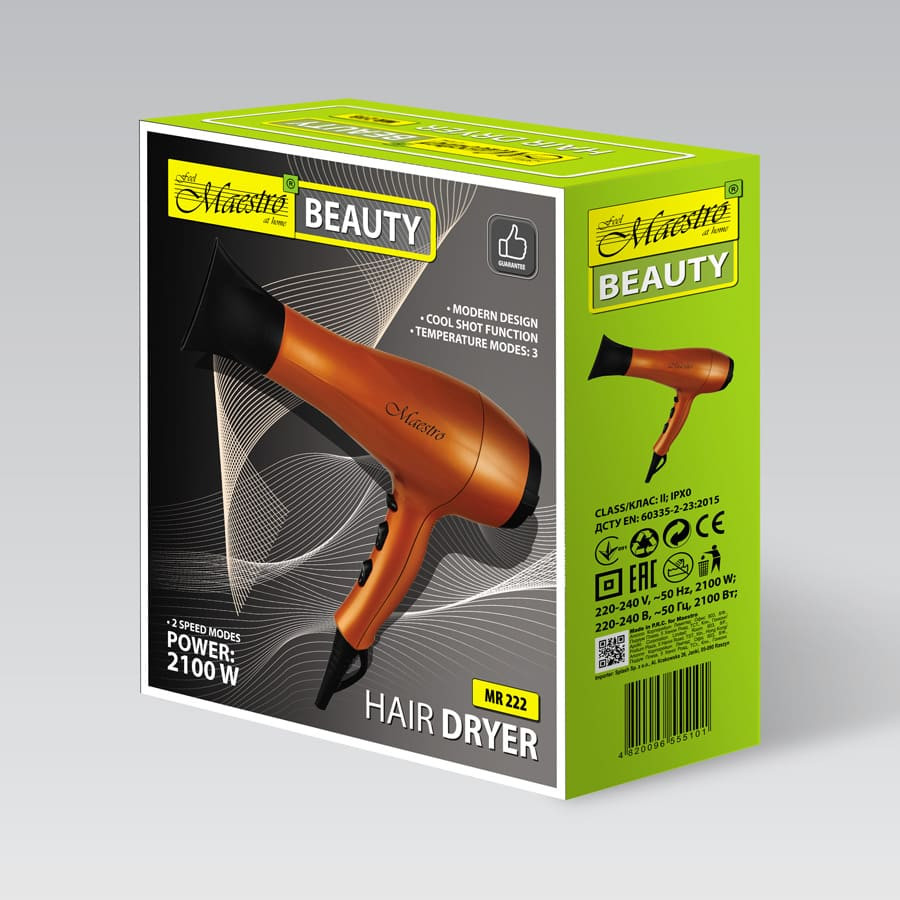 Feel Maestro Фен MR-222В данный момент этот товар отсутствует в продаже. Возможно, у нас найдется аналогичный или похожий товар здесь. Фен Feel Maestro MR-222 — это профессиональный инструмент для укладки волос. Он отличается эргономичным дизайном и предлагает пользователю множество функций. Фен имеет две скорости и три температурных режима, а также режим подачи холодного воздуха. Он подключается к сети 220-240 В и имеет мощность 2100 Вт. Фен Feel Maestro MR-222 позволяет быстро и эффективно создавать идеальную укладку волос. |