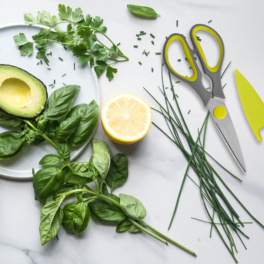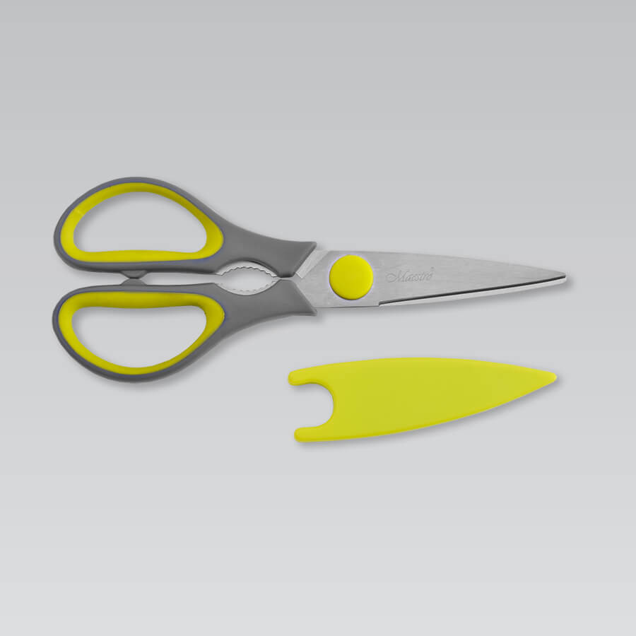 Feel Maestro Ножницы кухонные Feel Maestro MR-1440В данный момент этот товар отсутствует в продаже. Возможно, у нас найдется аналогичный или похожий товар здесь. Ножницы кухонные Maestro MR-1440 — многофункциональный инструмент для разделки продуктов. Такими ножницами можно измельчить: петрушку, зеленый лук, укроп, базилик, свежий чеснок, имбирь, шпинат, острый перец, грибы, цветную капусту и брокколи, слоенное тесто, лаваш, макароны; сыр и бекон, мясо, птицу и рыбу, а также фрукты и овощи. Преимущества: Режущая часть — высококачественная нержавеющая сталь. Она не окисляется и долгое время сохраняет остроту. Эргономичные рукоятки из пластика обеспечивают надежный хват и не скользят в руках. Компактные размеры и небольшой вес для максимального комфорта использования. Специальная заточка лезвий долго сохраняет остроту. Есть протектор на магните. Кухонные ножницы — настоящая находка для любого повара. Готовка перестанет быть рутинным процессом, а превратится в приятное времяпровождение. |