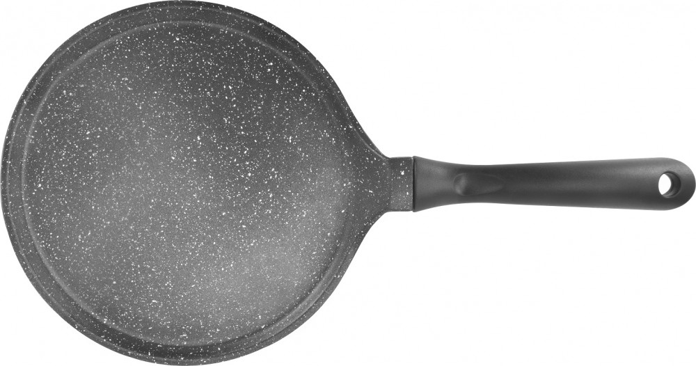 Сковорода блинная высотой 1,1 мм с внутренним диаметром 24 см (внешний диаметр 26,5 см) выполнена из высококачественного литого алюминия усилена антипригарным покрытием на внутренней (Whitford, 2 слоя) и внешней (PTFE) поверхности корпуса. Литой алюминий является довольно крепким и прочным материалом. Это влияет и на срок службы посуды, она служит довольно долго, не теряя внешне привлекательного вида. Пища не пригорает, готовится быстро и такая посуда не требует особого ухода. Специальное утолщенное индукционное дно толщиной 4,2 мм обеспечивают равномерный разогрев по всей поверхности. Бакелитовая ручка не нагревается и выдерживают нагревание до +180 градусов. Сковорода подходит для любого вида плит.