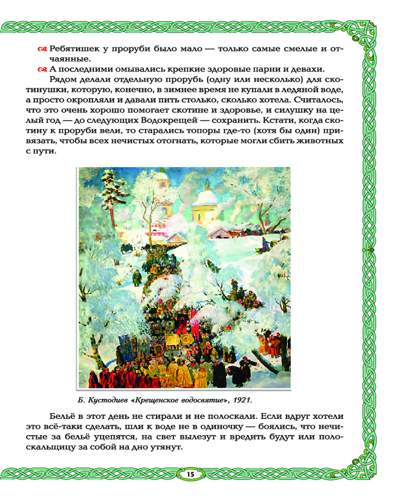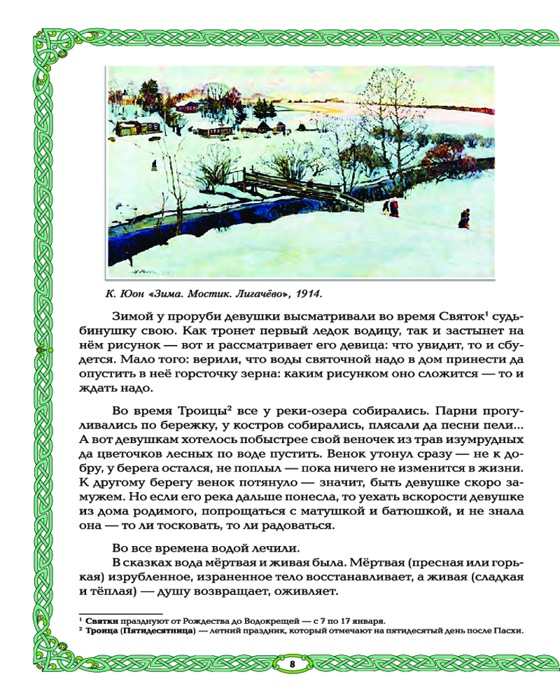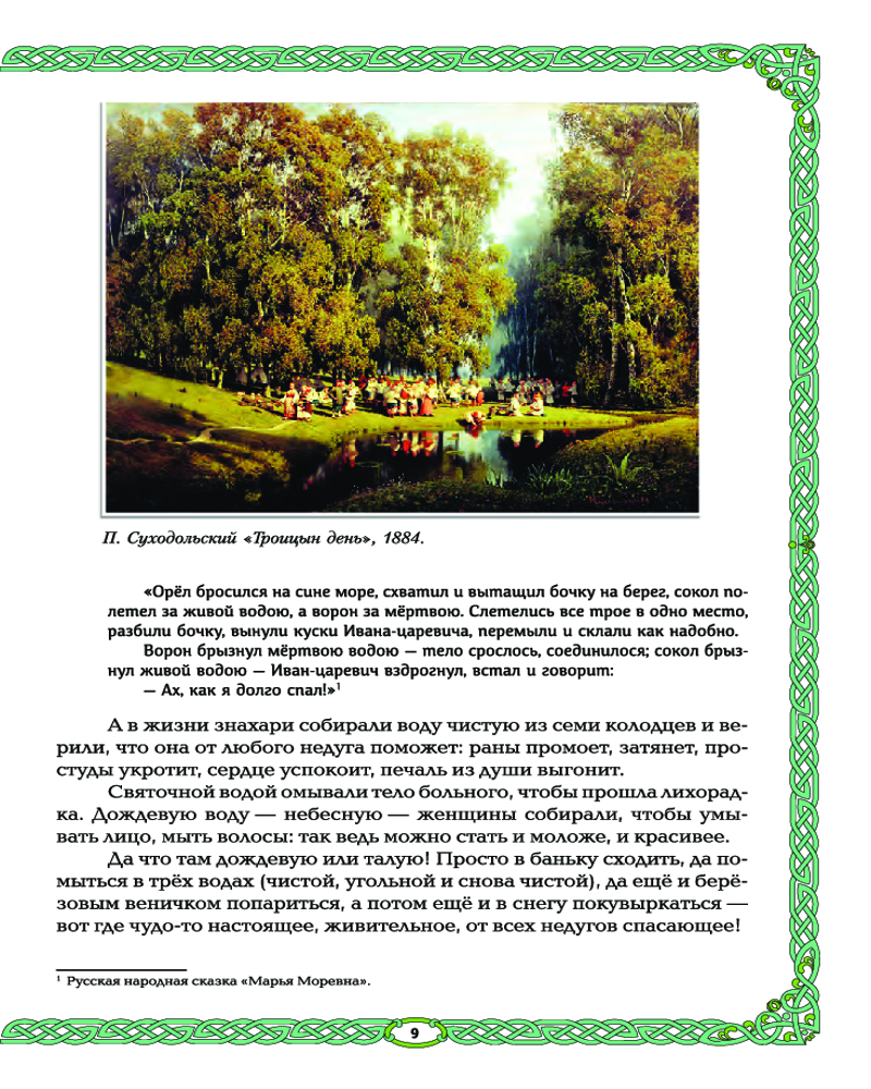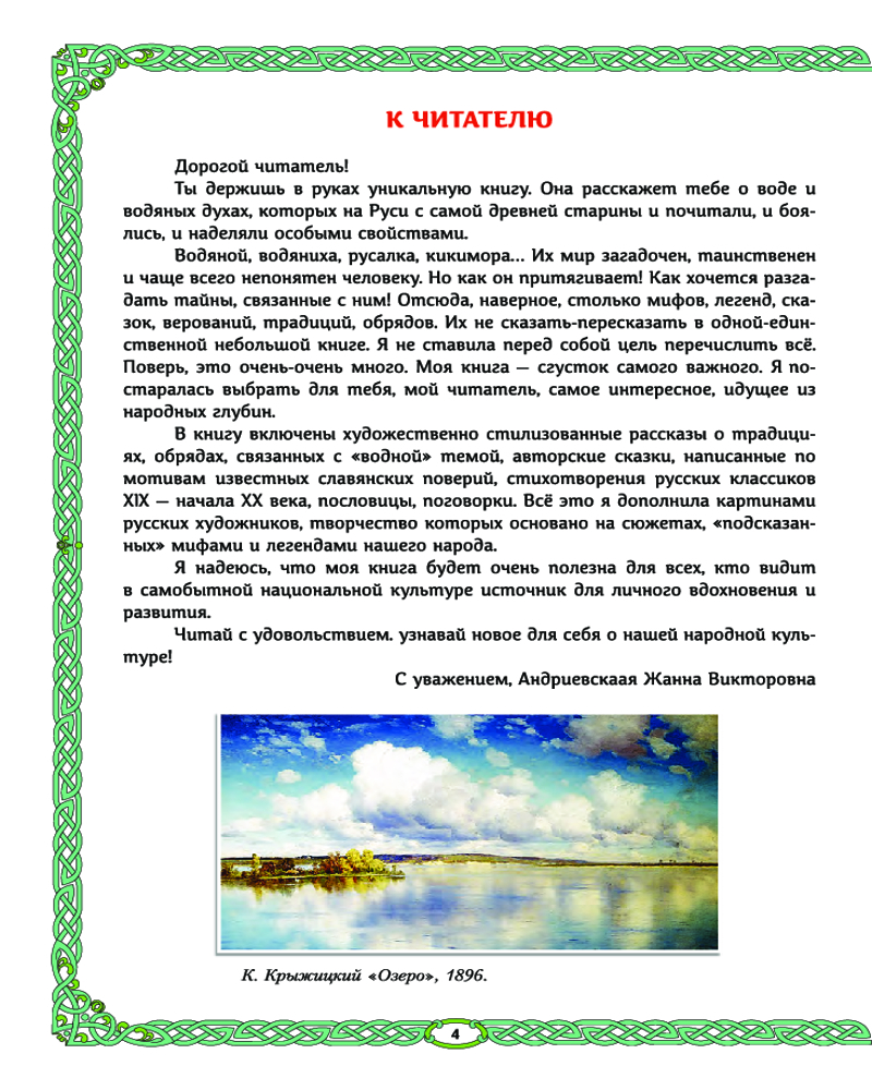 Русалки и водяные. Водная стихия в русской традицииВ данный момент этот товар отсутствует в продаже. Возможно, у нас найдется аналогичный или похожий товар здесь. Серия: Удивительная Русь Книга «Русалки и водяные: водная стихия в русской традиции» предназначена для широкого круга читателей, интересующихся уникальной русской культурой. В нескольких главах в лёгкой, стилизованной форме рассказывается об интересных обрядах, традициях, связанных с водой и «водной» нечистью. Ещё несколько глав — это авторские сказки, написанные по мотивам известных славянских поверий. В качестве дополнения — пословицы, стихотворения и проза классиков русской литературы, интересные факты из русской культуры. А картины русских художников, творчество которых основано на сюжетах, «подсказанных» мифами и легендами нашего народа, делают содержание книги цельным, полным и очень красочным. |
