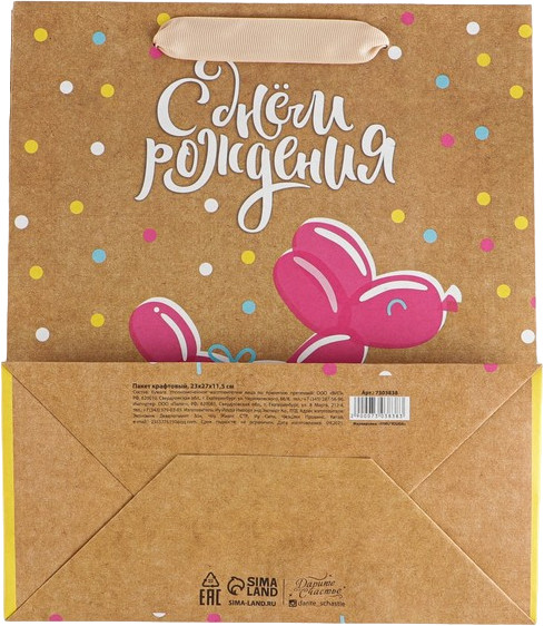 Дарите Счастье Пакет подарочный «Шарик»В данный момент этот товар отсутствует в продаже. Возможно, у нас найдется аналогичный или похожий товар здесь. Серия: 8 Марта Пакет подарочный «Шарик» изготовлен из высококачественной бумаги и имеет прекрасный дизайн с изображением шаров. Пакет имеет прочную ручку для удобства носить. Он идеально подходит для подарков и предметов личного пользования. |
