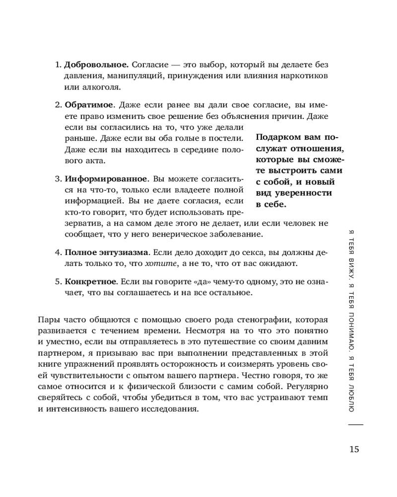 💳 Оплатить за товар можно при получении 🇰🇿 Есть бесплатная доставка по Казахстану от 1 дня 🎁 Копите бонусы с каждой покупки Серия: Сексуальный интеллект. Книги, которыми стоит заняться «Мы можем быть близки друг с другом только в той мере, в какой мы близки с собой», — простая истина, которую часто упускают из виду, когда речь идет об интимных отношениях. Секс-коуч и эксперт в области отношений Зои Корс показывает, как шаг за шагом, с помощью упражнений и бережных совместных практик достичь того уровня близости, который будет приносить счастье вам обоим. Вы вместе, но каждый своим путем, придете к радикальному принятию себя и друг друга. Научитесь настраивать мозг, тело и дух на потрясающий секс и здоровую глубокую привязанность, даже несмотря на прошлые травмы и обиды. |